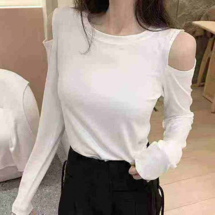 ☕️春秋性感露肩上衣显瘦莫代尔t恤女长袖外穿圆领打底衫180件全清6.8元,...