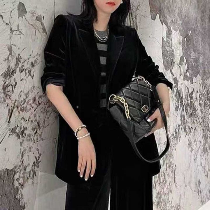 上新全清:13.8一件气质时尚ins金丝绒黑色百搭宽松外套,内里有垫肩,65件...