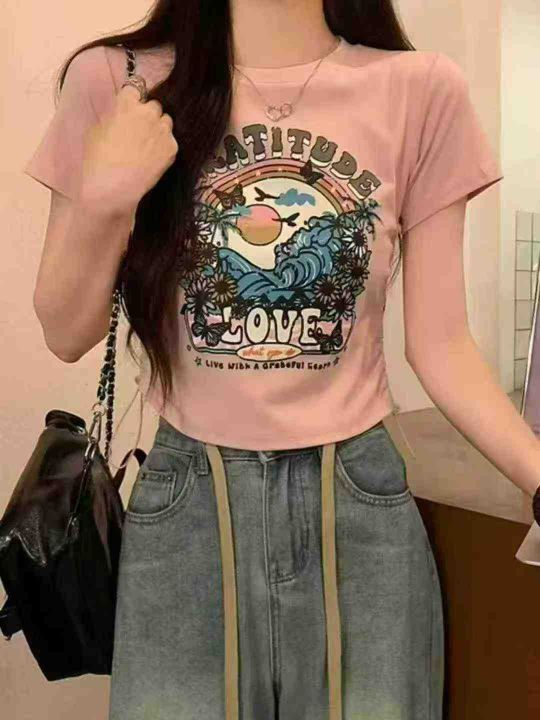 10.9清广州十三行档口货3000件夏季网红爆款纯棉辣妹抽绳短t,可穿90-130斤...