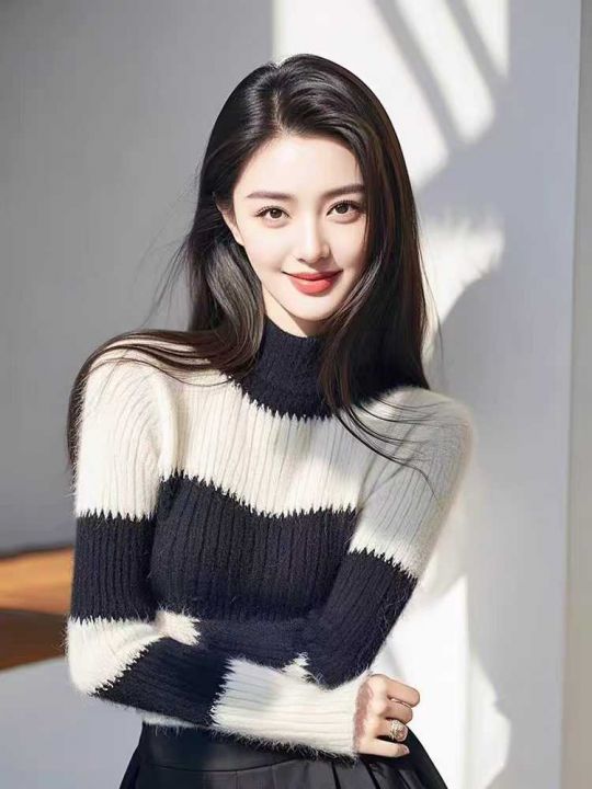 上新全清:10.8一件慵懒风黑白撞色半高领轻糯针织毛衣,250件左右,两个款...
