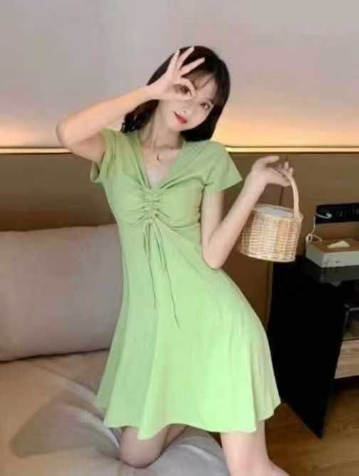 法式连衣裙425件,清货清货5.9,面料有弹力,抽绳褶皱设计,码数M-3XL,独立...