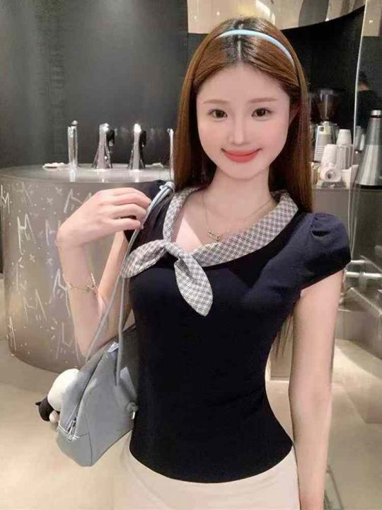 上新全清:6.8一件韩系甜美撞色水手领绑带收腰显瘦上衣,[爱心]165件左右,...