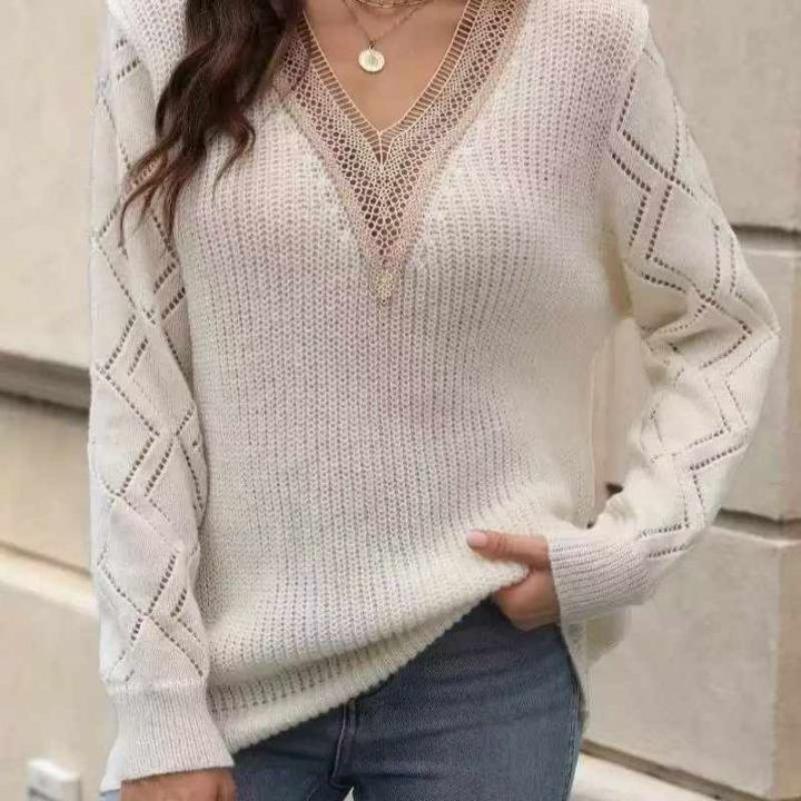 秋冬新款外贸原单美式宽松慵懒风V领粗针套头毛衣,独立包装,码数S-2XL码,...