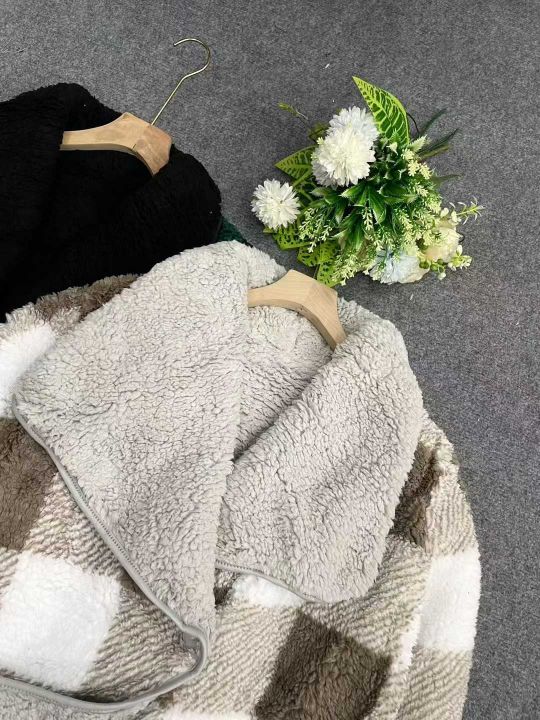 399件大翻领格纹休闲毛绒外套。图片款,面料柔软舒适保暖,品质好。S一2XL,...