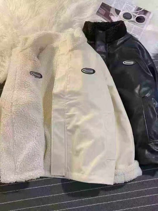 [啤酒]天猫在售两面穿棉服男女秋冬季ins加绒羊羔毛外套韩版潮流PU皮棉衣加...