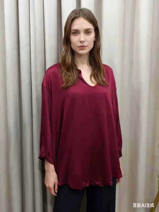 外贸款小V领七分袖T恤女早秋季大码胖mm内搭打底衫不规则上衣码数:XL-5XL...