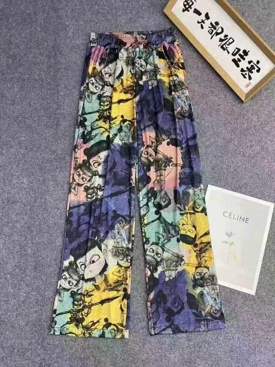扎染哪吒图印阔腿裤1075件6.5,面料舒适高弹力,松紧腰,有口袋,码数4-6码...