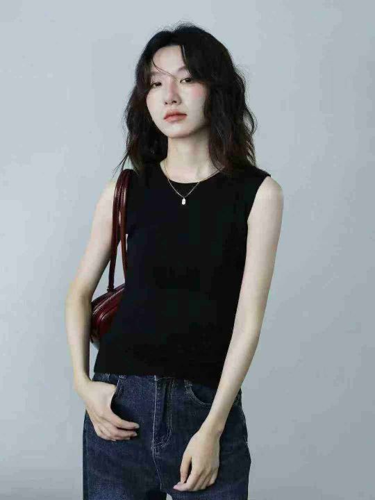 全清2.9 气质名媛夏季内搭蕾丝花边修身缎面背心,纯色设计感时尚背心,全...