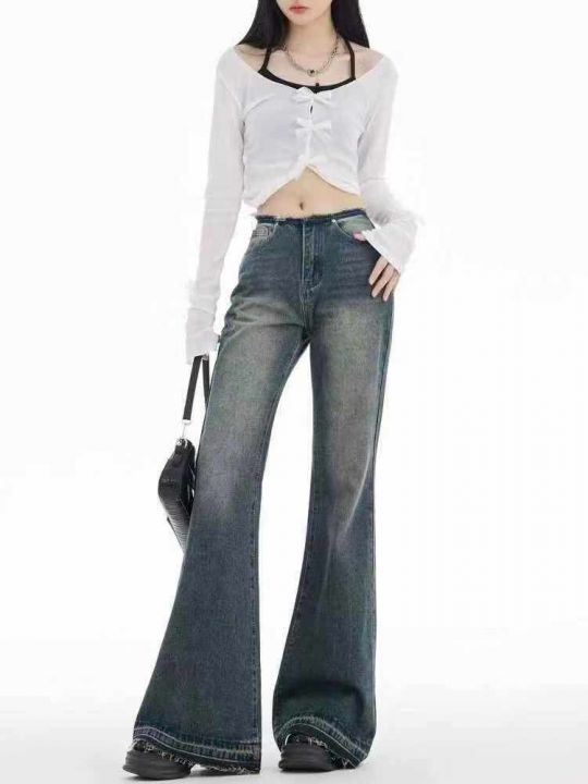 秋季新品高品质女装洗水棉网红复古爆款喇叭牛仔裤,独立包装带吊牌,码数XS...