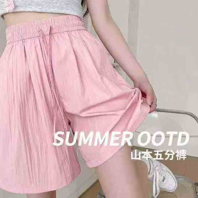 新款冰丝山本休闲短裤女夏季薄款韩版高腰运动直筒阔腿五分裤,数量151件,...