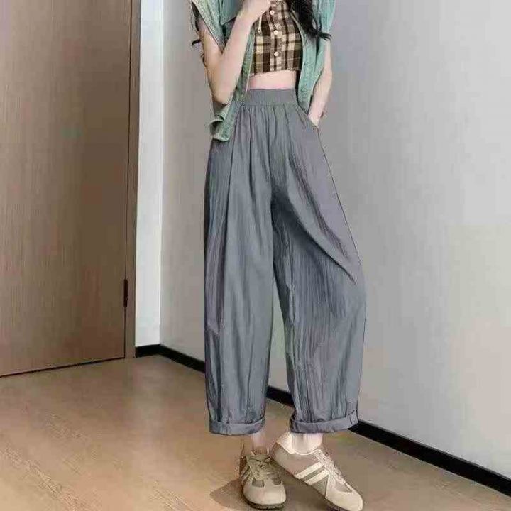山本阔腿裤女夏季薄款高腰宽松卷边小个子九分直筒裤,两个款式,数量639件...