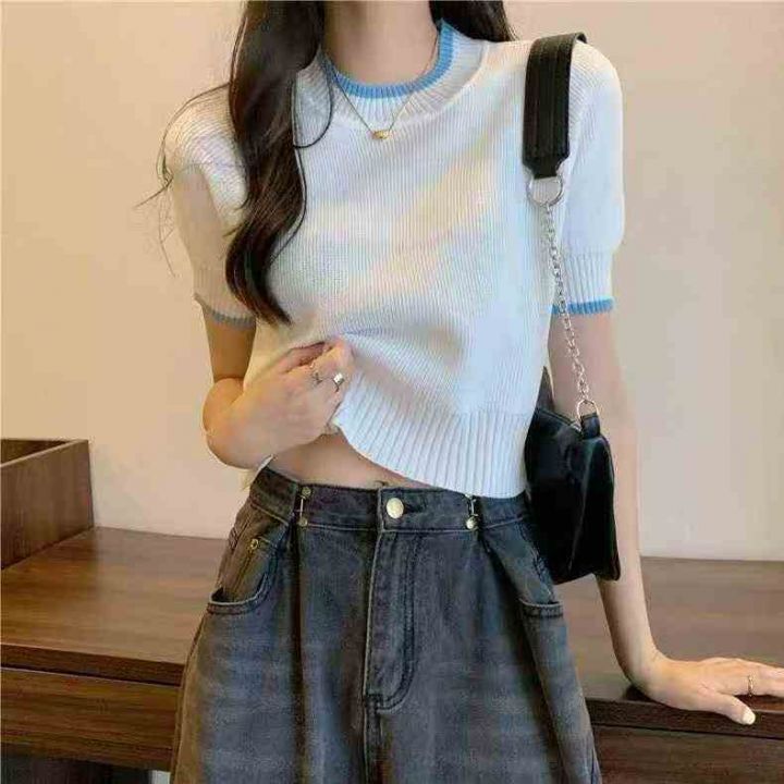 洋气甜辣撞色针织短款T恤短袖·单款单色40件独立包装全清5.9不分货...