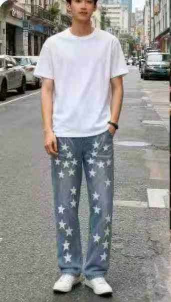 秋季新品洗水棉高级感五角星潮牌直筒男士牛仔裤,独立包装带吊牌,码数32--...