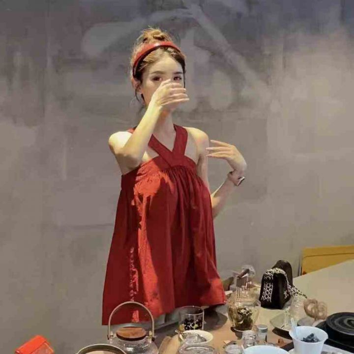 150件左右韩系新款减龄露肩显白挂脖小衫女别致休闲百搭时尚宽松吊带上衣,...
