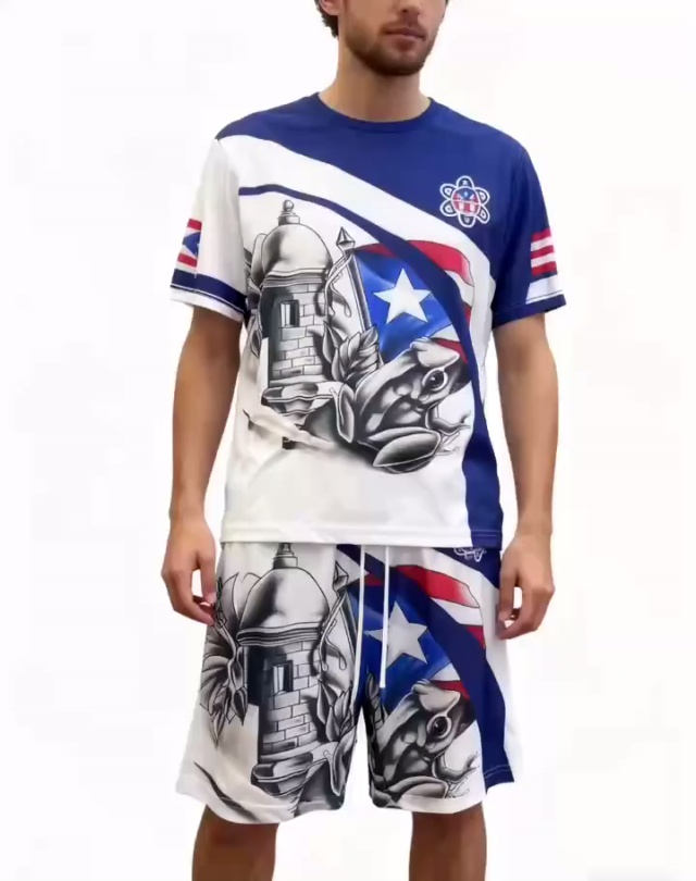 17000套男士外贸爆款运动套装,圆领男士时尚清凉轻薄男士潮流短裤套装,印...