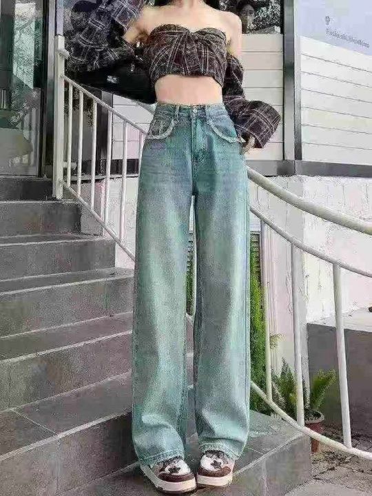 ☕️复古阔腿牛仔裤女春秋新款高腰垂感宽松直筒拖地裤 4500条全清13.8元,...