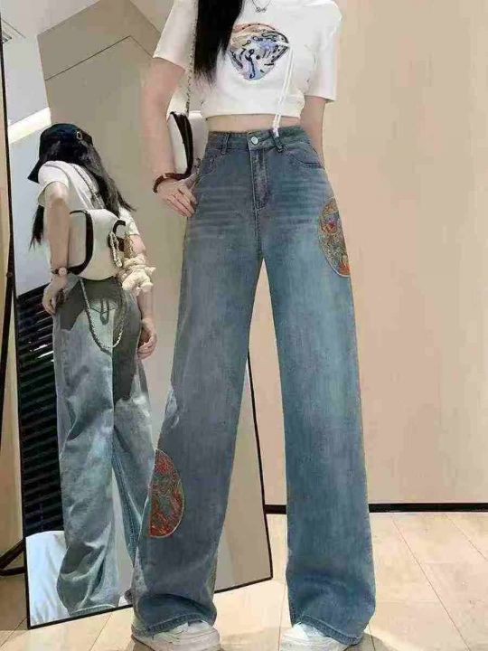 ☕️刺绣阔腿牛仔裤新款中国风阔腿牛仔裤新中式显瘦牛仔直筒裤495条全清12....