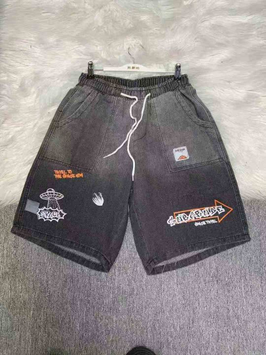 美式牛仔短裤男士夏季薄款潮牌痞帅高级感宽松直筒五分中裤120件,独立拉链...