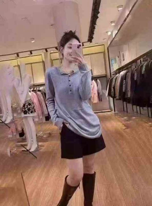 115件长袖t恤女辣妹炸街减龄v领polo针织衫内搭抽绳短款高腰露脐上衣潮,尺...