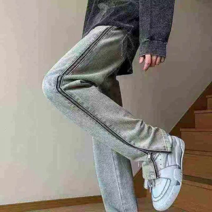 清10.8分货➕1美式vibe裤子ins高街潮黄泥牛仔裤男女侧边拉链开叉宽松直筒长...