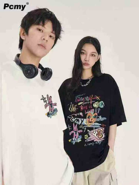 5.9清电商仓回收3394件潮牌男女同款印花宽松短袖T恤,码数XS-2XL码。后领包...