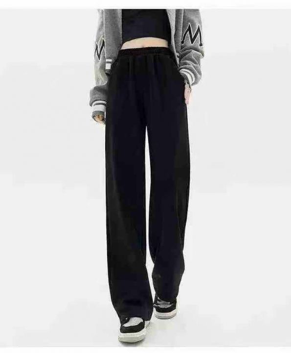 秋冬黑色运动加绒直筒休闲裤女,单款单色,面料厚实有质感,有独立包装,数...