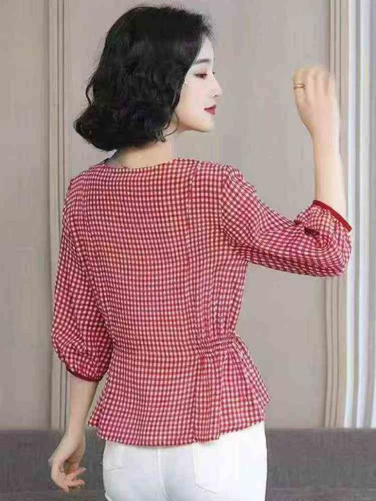 400件欧洲站格子真丝褶腰衬衣短袖,S/3L红色和黑色格,红色占多半, 全清8....
