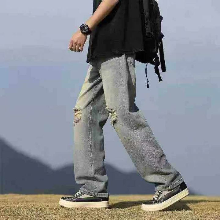 美式街头水洗破洞男士宽松阔腿牛仔裤,单款单色,独立包装,数量180条,S-3...