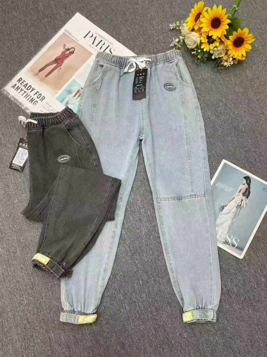 秋季新品洗水棉网红爆款高腰宽松牛仔老爹哈伦裤,独立包装带腰卡,码数XS-X...