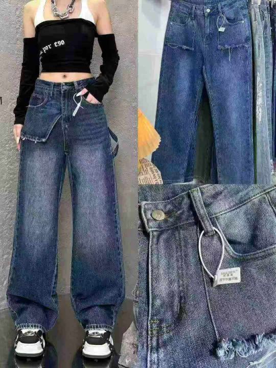 天猫下架一批高品质网红靓妹女装洗水棉小整杂款牛仔阔腿直筒烟管紧身牛仔裤...