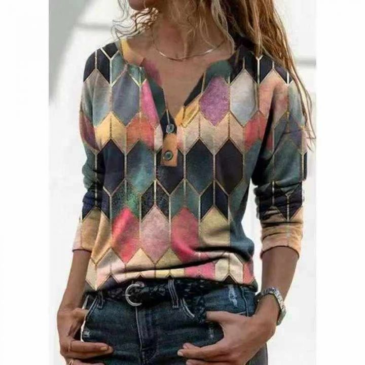 2935件外贸时尚印花撞色打底衫上衣女,尺码S~3XL,面料柔软高弹力,全部独...
