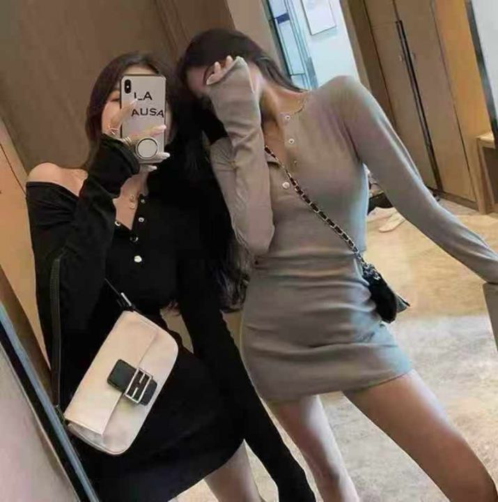 全清价6.8元长袖包臂性感气质修身显瘦辣妹弹力连衣短裙,独立包装,码数1-4...