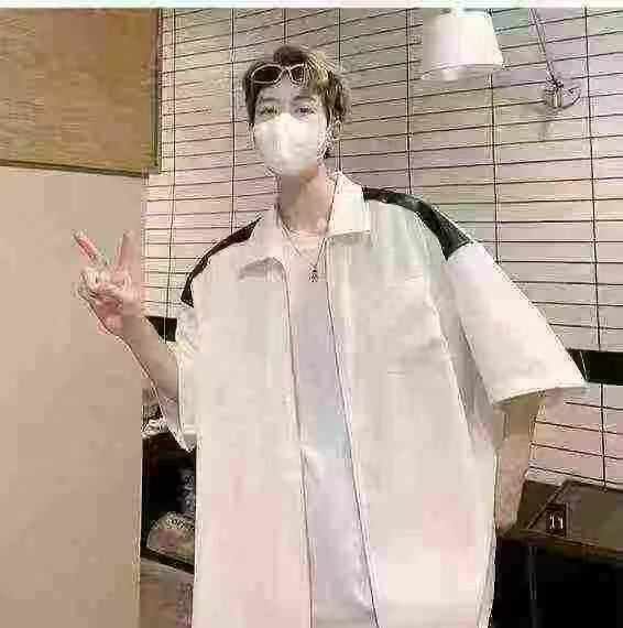 衬衫男夏季小众设计感撞色短袖衬衣美式高街潮牌宽松休闲外套数量:438件...