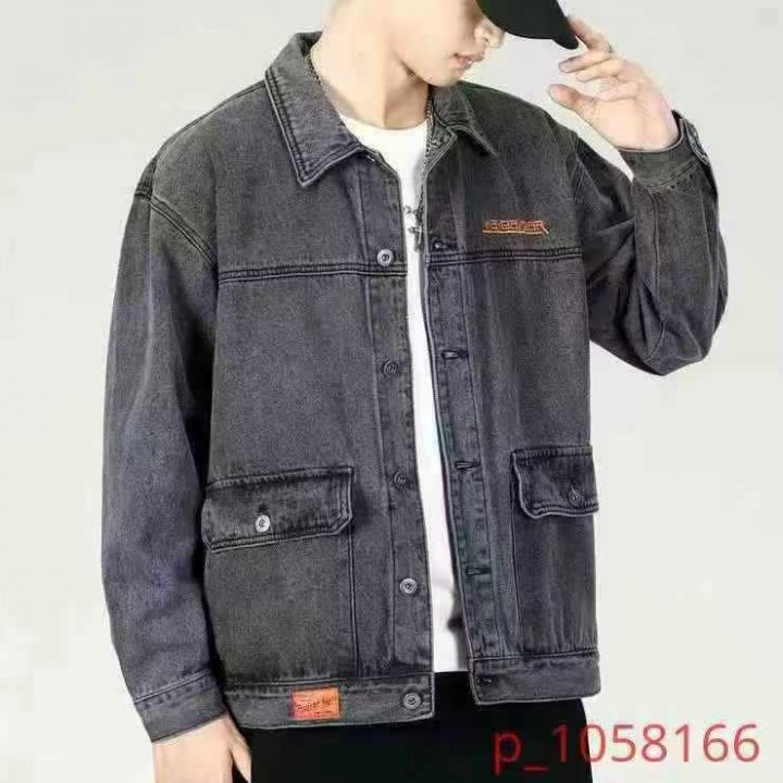 牛仔夹克男外套夏季新款宽松休闲大码干活防晒多口袋刺绣牛仔上衣,(注有问...