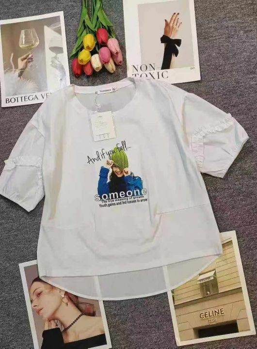 捡漏全清:1.8一件简约通勤设计感印花泡泡袖T恤,[爱心]405件左右,码数L-4...