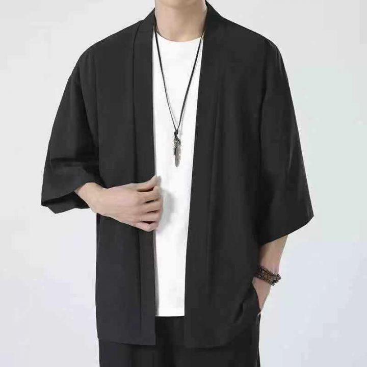 夏季新款男士简约休闲纯色七分袖开衫T恤,码数m-xxl(160-200斤),100件左...