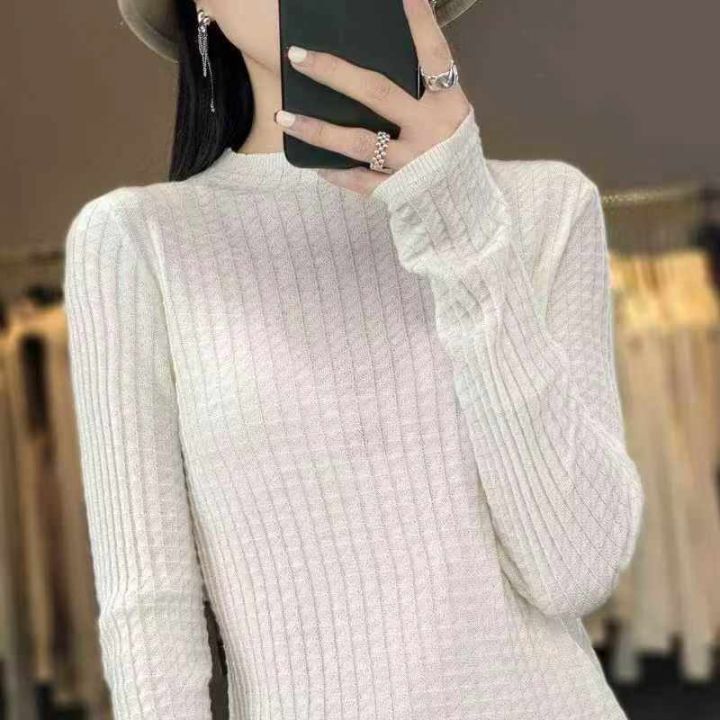 秋冬新款半高领薄款华夫格精纺设计感内搭打底针织衫,独立包装,均码面料柔...