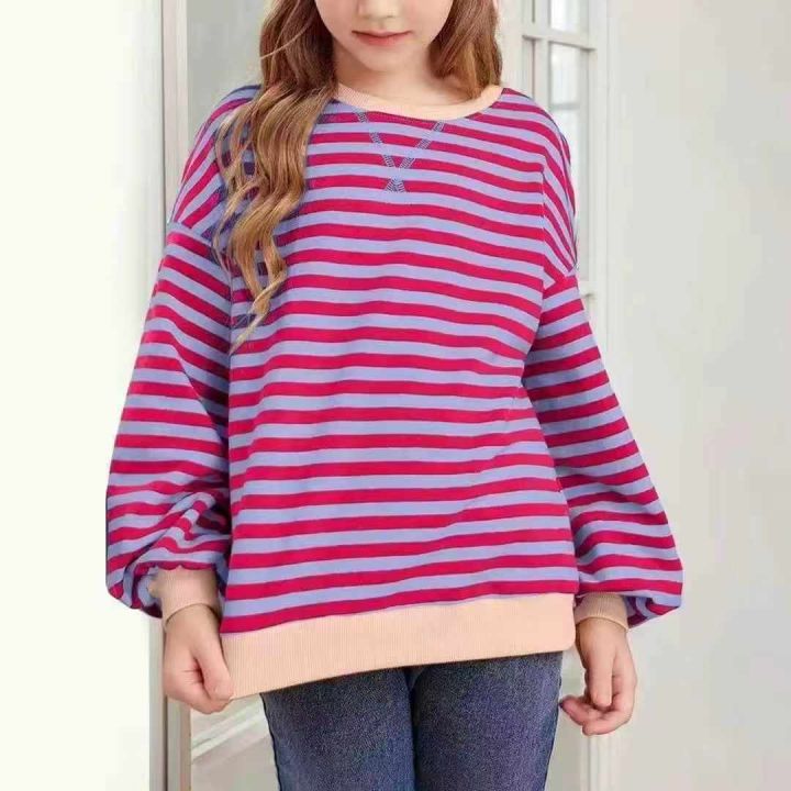 女装卫衣春秋季简约条纹圆领长袖款式套头拼色卫衣,码数S M L XL,独立包装...