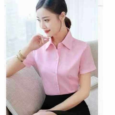 新款春夏季短袖衬衫百搭修身衬衣女正装翻领纯色韩版衬衫,独立包装,S -3 ...