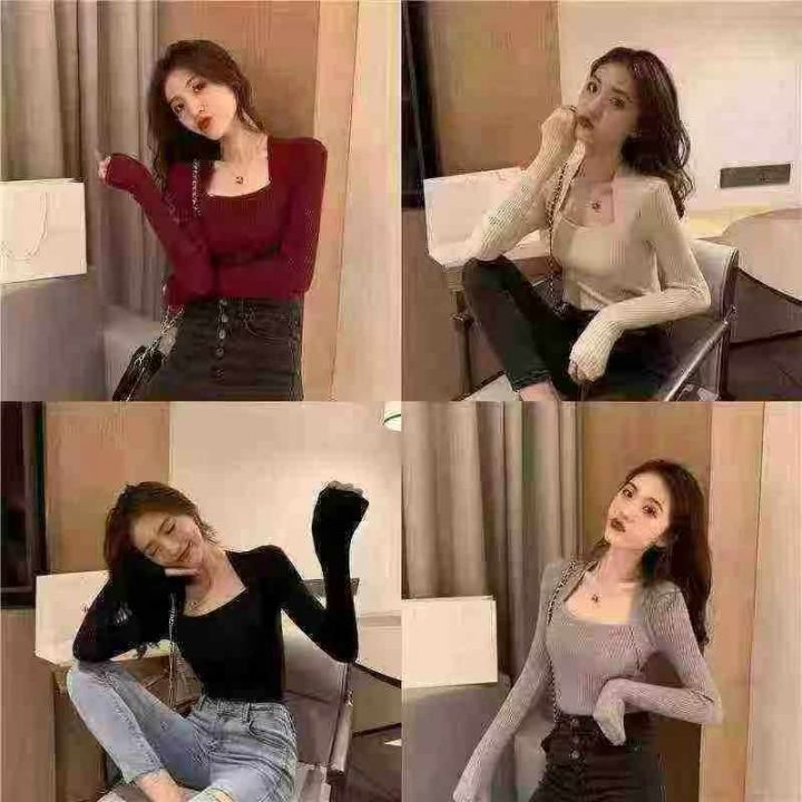 包芯纱超火的毛衣方领打底衫女内搭冬季紧身显瘦洋气秋冬百搭针织衫上衣,独...