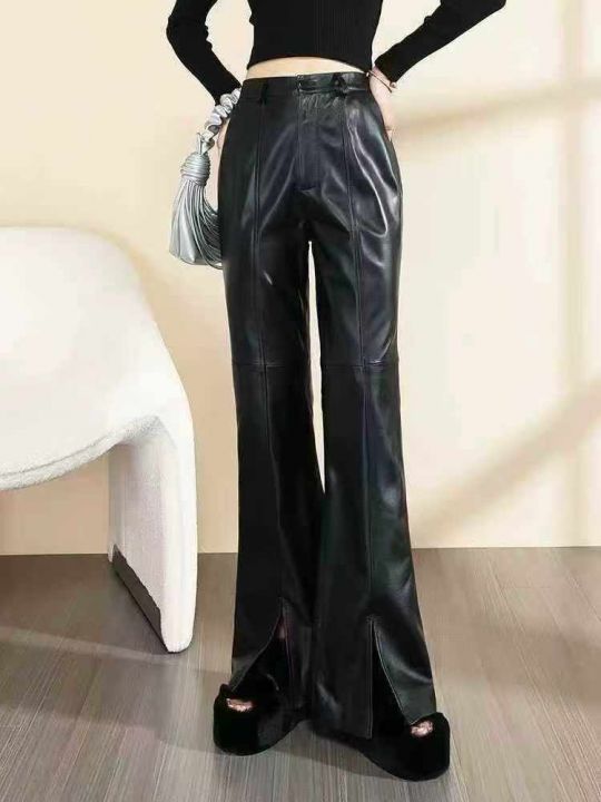 全清:4.8黑色PU辣妹修身小脚喇叭高腰显瘦百搭加绒皮裤,品质好,小整杂,...
