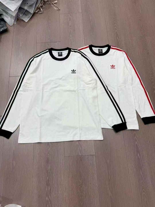 1000件阿迪达斯三叶草男女同款三条杠针织长袖T恤100件起分,码数齐全。 ...