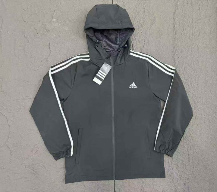 Adidas阿迪达斯HE4322经典三条杠运动网格内衬防风连帽梭织外套黑色 xl-197 ...