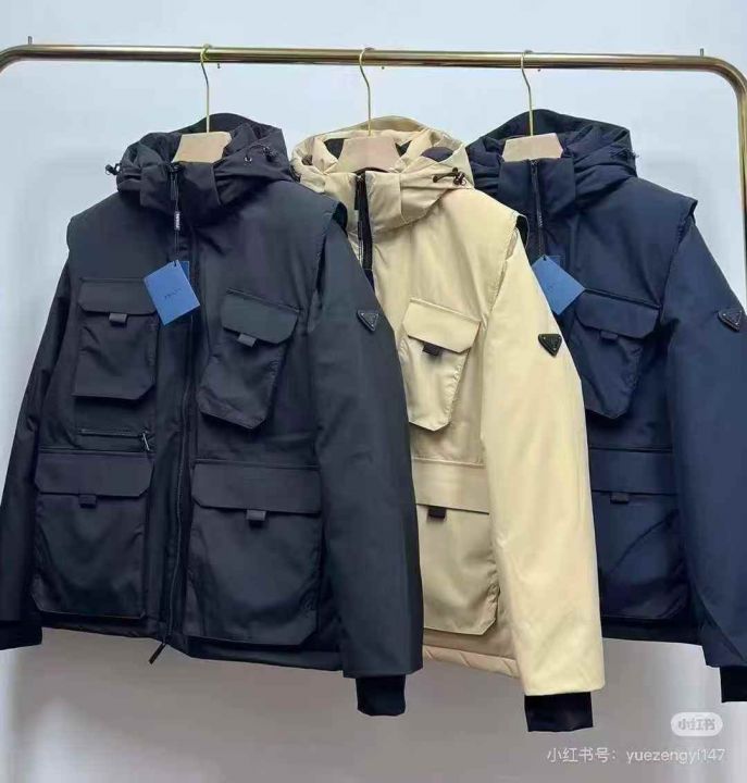 Prada/新款黑标男士羽绒服拆卸做马甲 防风防水普拉达保暖外套 黑色 蓝色 ...