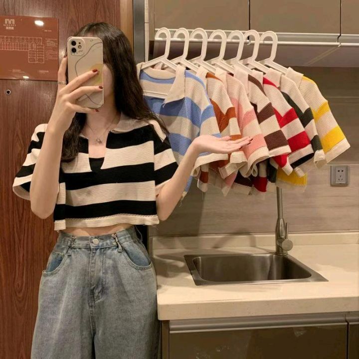 夏季新款韩系温柔风短款宽松短袖针织衫,独立包装,均码面料柔软舒适有弹力...