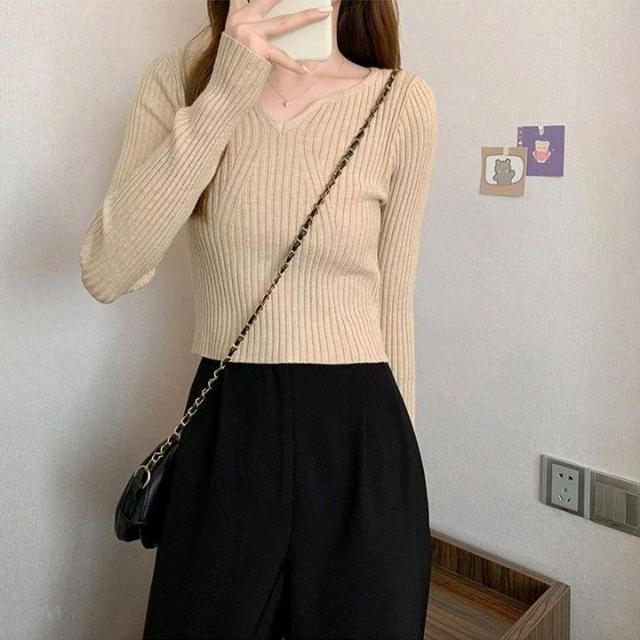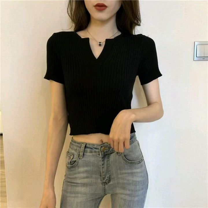 夏季新款纯欲风辣妹性感御姐V领弹力修身显瘦针织衫,独立包装,均码面料柔...