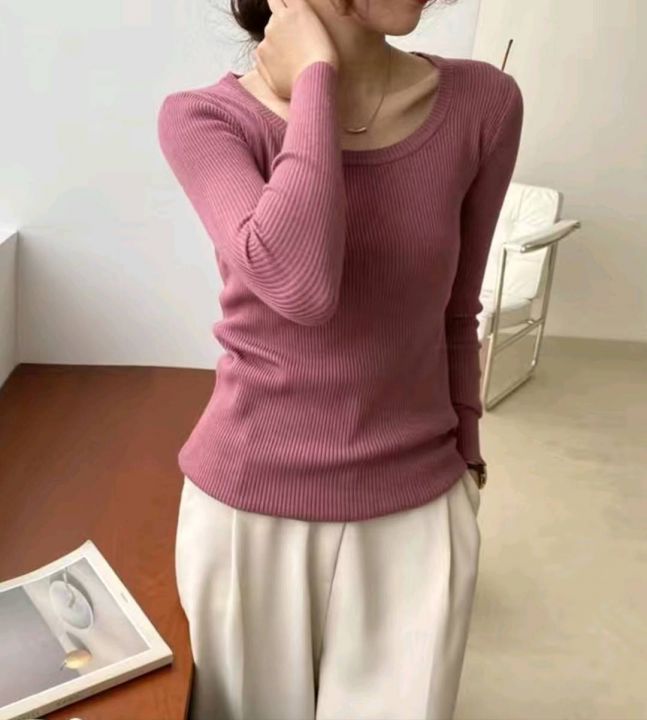 春秋新款网红设计感小众不规则洋气弹力修身显瘦坑条包芯纱套头毛衣,独立包...