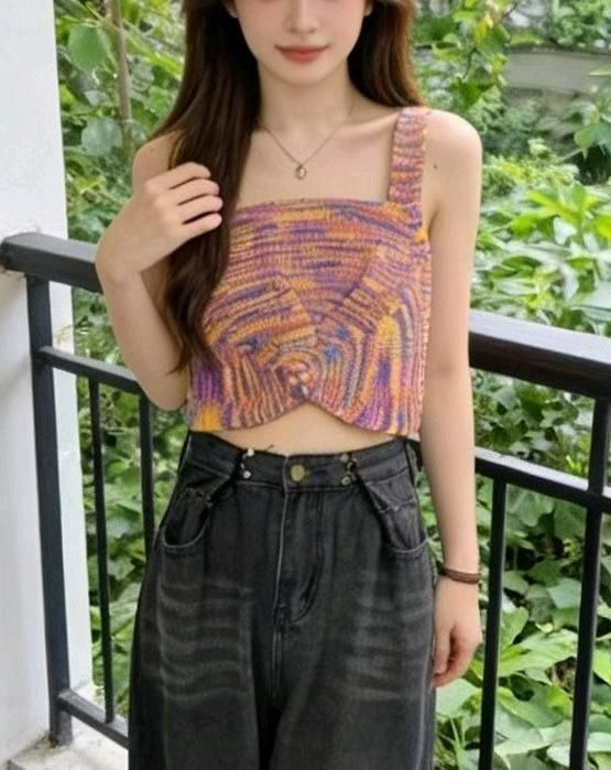 夏季新款辣妹纯欲撞色彩虹条纹设计款针织吊带背心,独立包装,均码面料柔软...
