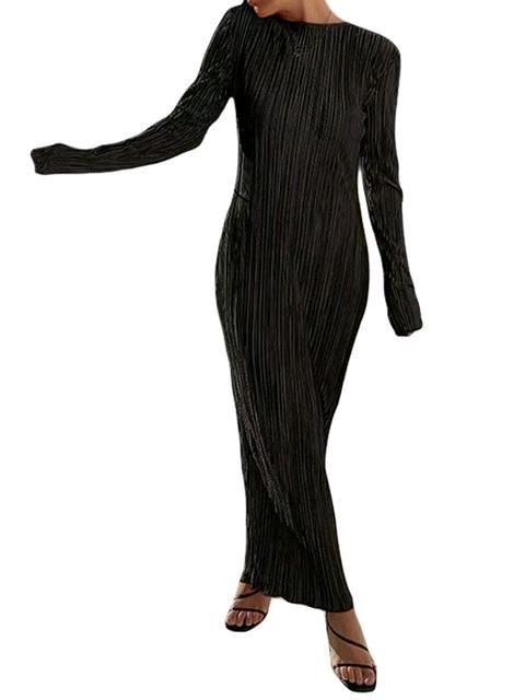 春季新款品牌外贸原单美式三宅弹力褶皱大长款连衣裙,独立包装带吊牌,单款...