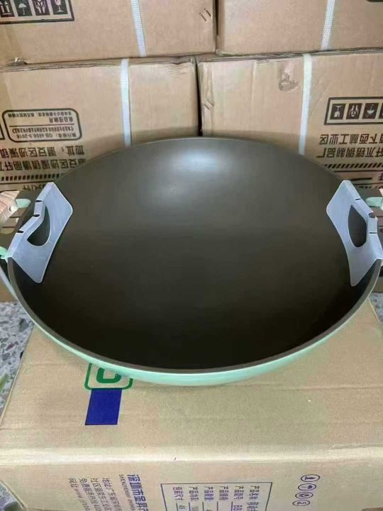 800个不粘锅双耳圆底炒锅家用轻便炒菜锅煎炒锅燃气灶适用,原箱原件处理。...